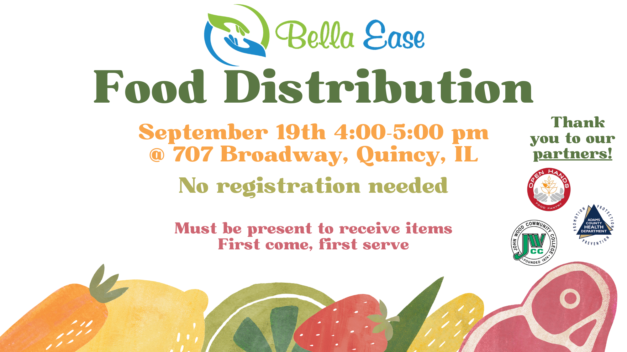 Stop by between 4:00 and 5:00 PM on Friday, September 19th for our Mobile Food Pantry. Items will be given away from the Open Hands Food Pantry. Please bring a box or bag to carry your items in.