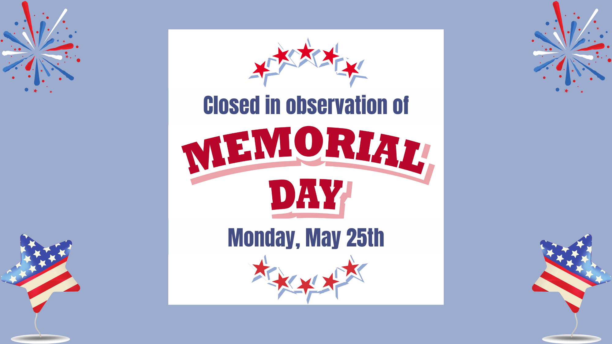 Closed for Memorial Day